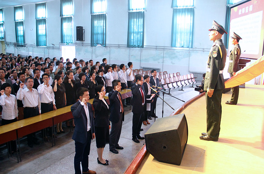 书记、院长伊逊智同志带领全体教师重温教师誓词
