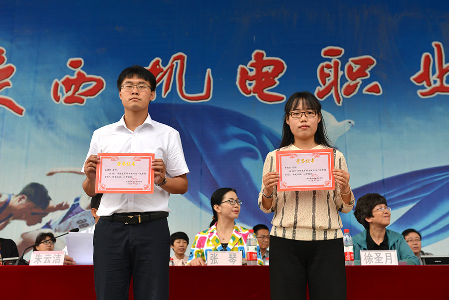 9月22日,陕西机电职业技术学院2017级新生军训汇报表演暨总结表彰大会在学院大操场隆重举行。院领导伊逊智、张新堂、徐圣月、张琴出席,各部门主要负责人、秦岭学生军训基地副主任卢春国等军训教官、全体新生及新生辅导员参加。大会由副院长张琴主持。