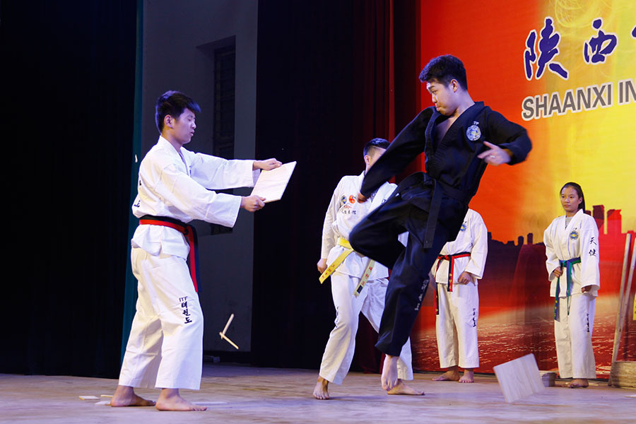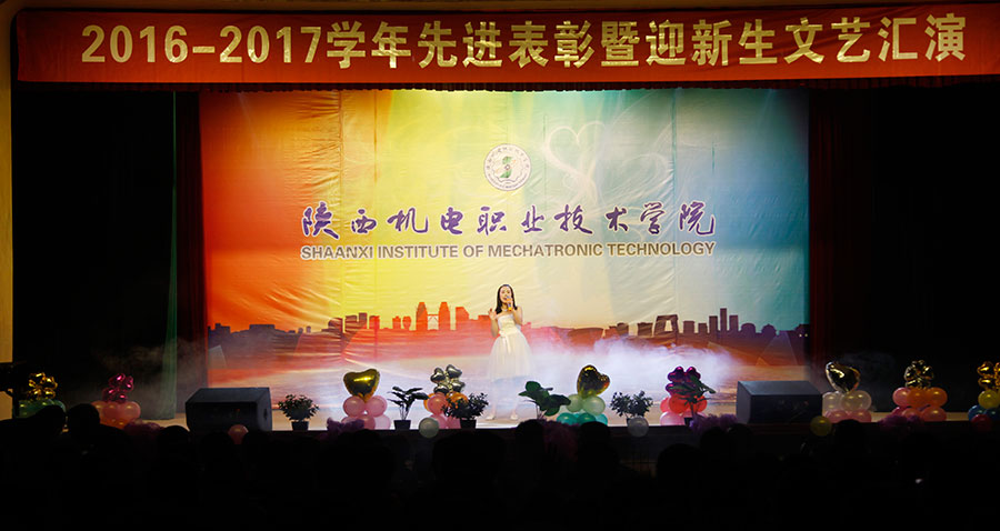 在随后的文艺晚会中,学生们表演了精彩纷呈的文艺节目,欢迎17级学生加入陕西机电职院这个大家庭,17级辅导员马剑宇老师演唱了歌曲《five hundred milies》点燃了会场的气氛。国旗班小品《训练场上》展现了军人的风姿,17级藏族学生嘎桑单曲演唱了藏语歌曲《我亲爱的父母》表达了对父母的感恩,跆拳道协会的表演展现了学生坚毅、吃苦耐劳的精神风貌,也为本场晚会划上了圆满的句号。