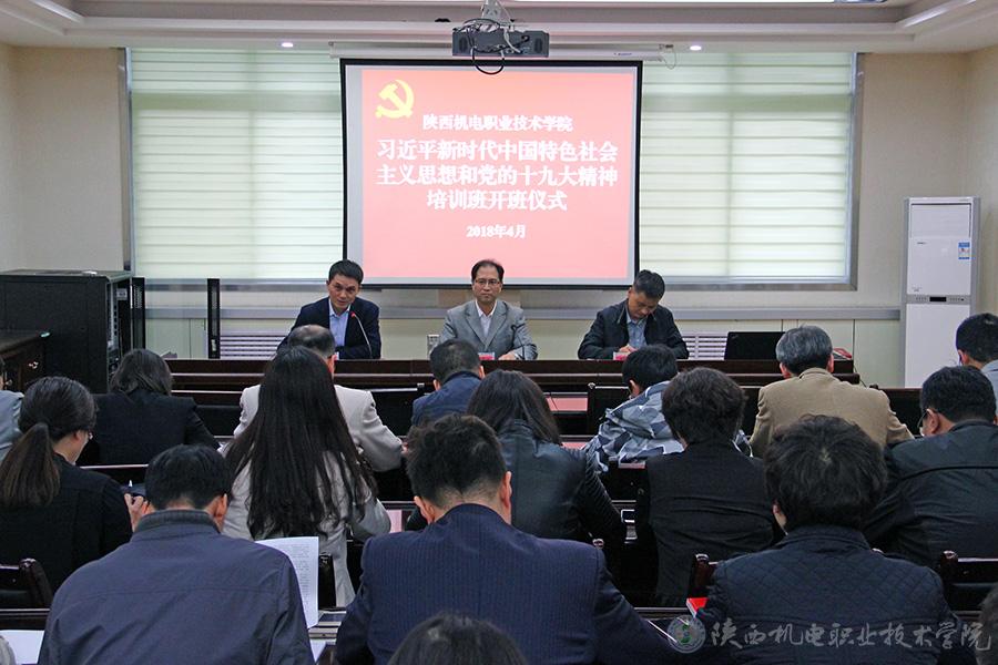 2018年4月23日,我院党的十九大精神集中学习培训班开班仪式在行政楼三楼东会议室举行,学院党委委员、各党支部书记和委员、中层干部及教研室主任参加培训,开班仪式由党委委员、院长助理、组织部部长赵争东主持。