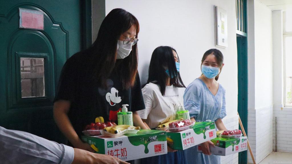 向院长在为同学们送上生活慰问物资的同时,给同学们说明近期学院防控工作要求,对同学们遵守学院管理规定、配合做好防控工作表示感谢,同时亲切询问了同学们隔离期间的学习情况、生活情况和身体情况,嘱咐他们一定要加强自我防护,按时作息,保证充足的睡眠,保持良好心态,保持宿舍环境卫生和良好通风状态,在抗击疫情中体悟对生命的敬畏,扛起家国的责任。张院长表示隔离期间有任何生活和学习上的问题及时向辅导员、学生处、院领导反映,学院将会为学生隔离期间的学习生活提供全面保障服务。