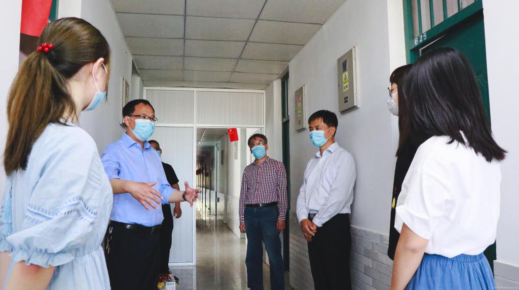 院长向纪明嘱咐隔离区女生要做好自我防护