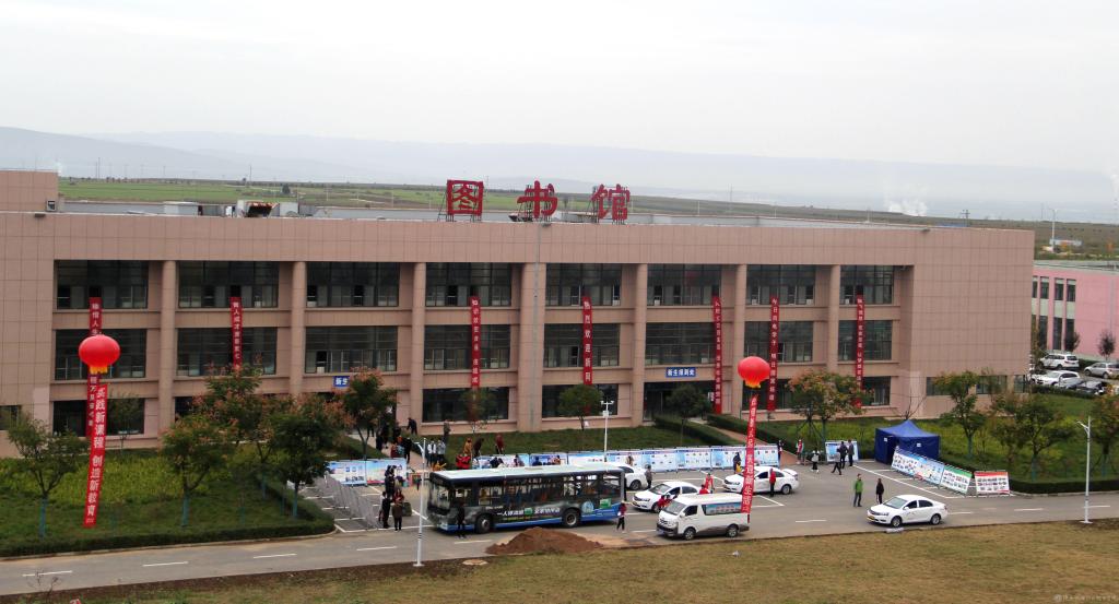 陕西机电职业技术学院蟠龙校区图书馆前迎新布展