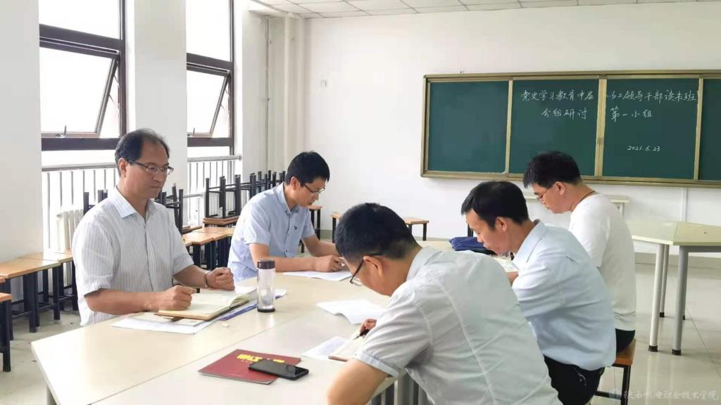 根据党史学习教育读书班安排,围绕第一阶段的党史学习情况,6月23日下午,我校党史学习教育读书班在宝福路校区分4小组开展集中交流研讨。党委书记伊逊智,党委副书记、院长向纪明,党委副书记邓新治,党委副书记、纪委书记齐晓军分别作为组长主持小组研讨会。