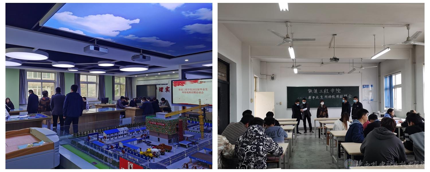 在网络视频招聘会现场,由各二级学院院长、书记、专业教师组成的指导团队认真、耐心的指导毕业生求职应聘,毕业生积极与用人单位进行线上(音频、视频)沟通交流,了解公司的发展、工作环境、招聘职位、岗位要求及薪资待遇等情况。