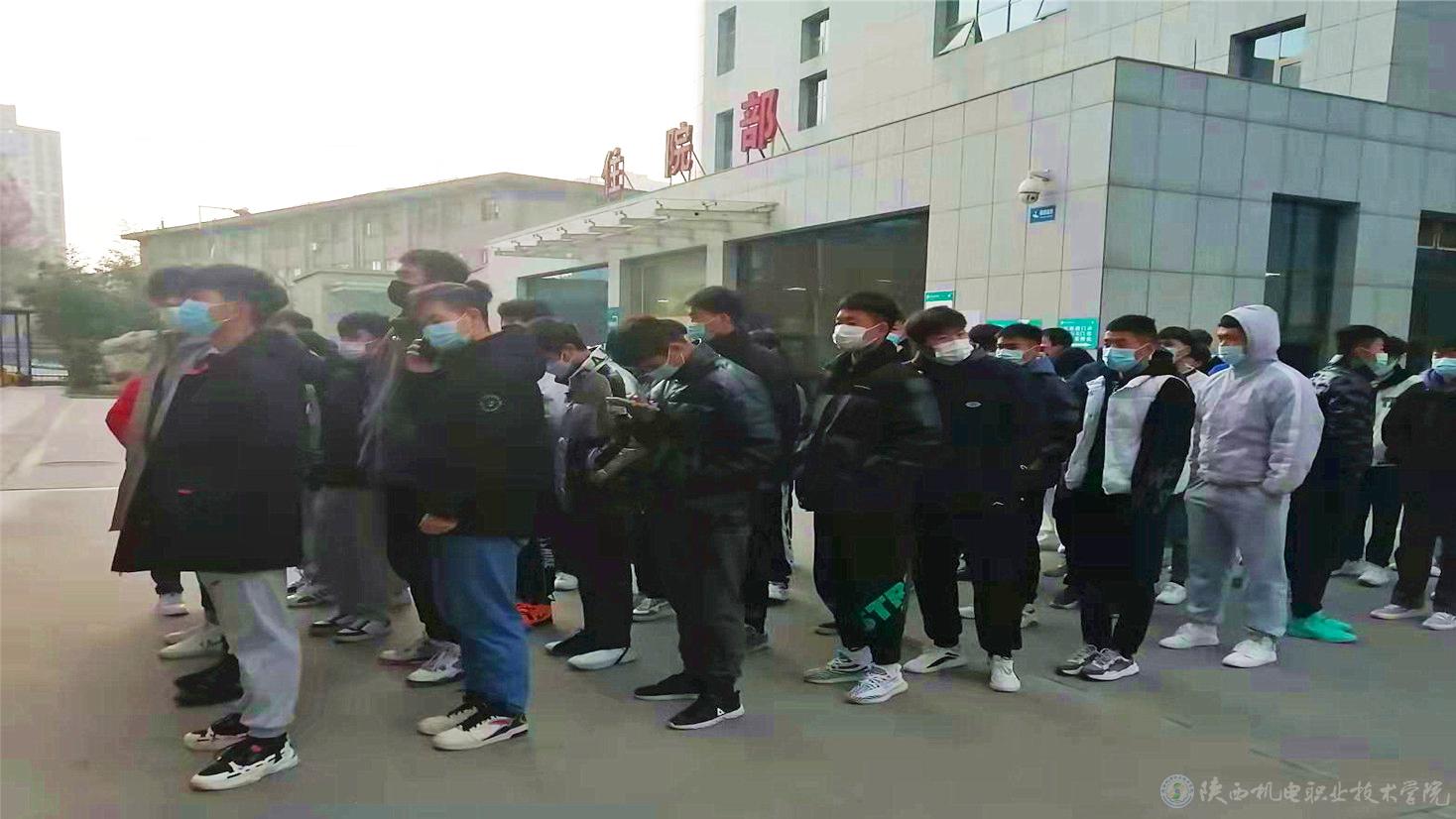 为阻断疫情期间感染风险,初检前,学校人武部积极联系金台区武装部,协调金台医院分别到两个校区对应征大学生进行核酸采集,确保所有学生核酸检测为阴性后方可参加体检。初检当天,人武部协调专车将两个校区应征大学生接送至金台医院体检科,封闭体检科,保障应征入伍的大学生全程隔离体检。