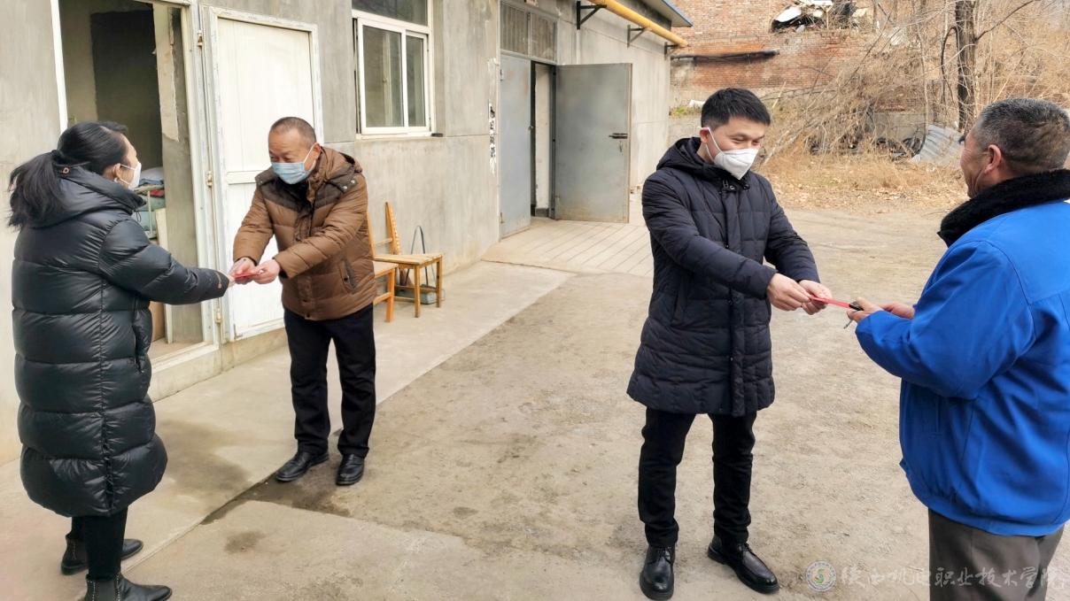 赵争东一行先后来到宝福路校区校南门门卫室、供热中心、后勤维修等岗位,亲切看望和慰问了坚守在各岗位工作人员,并送上慰问红包,感谢他们在春节期间放弃与家人团聚的机会,坚守在工作一线,并向工作人员致以诚挚的问候,同时详细了解学校在节假日期间的服务、供热、安保等情况,叮嘱大家守好岗、尽好责,确保校园安全稳定。学校的关心、慰问使坚守岗位的工作人员倍感亲切并深受鼓舞,大家纷纷表示将恪尽职守,以更加饱满的工作热情、更充沛的精力,投入到学院的各项安全管理、后勤保障工作中去,确保全校教职工度过一个快乐、祥和的春节。