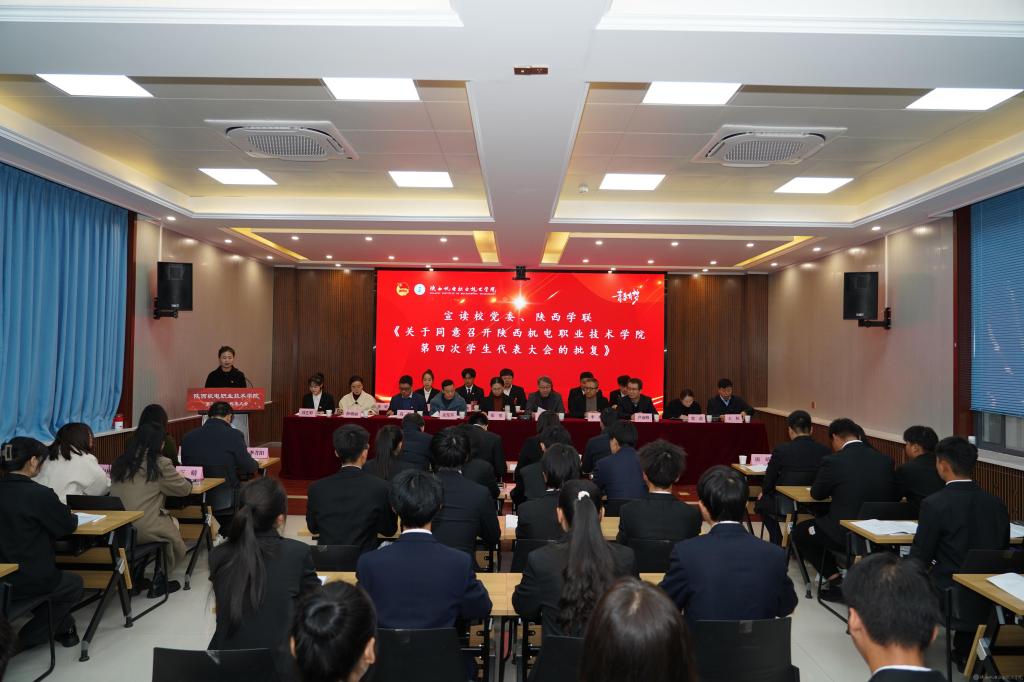 大会在庄严激昂的国歌声中开幕。王建斌宣读校党委《关于同意召开陕西机电职业技术学院第四次学生代表大会的批复》;王枢宣读《陕西省学生联合会关于同意陕西机电职业技术学院第四次学生代表大会的批复》。