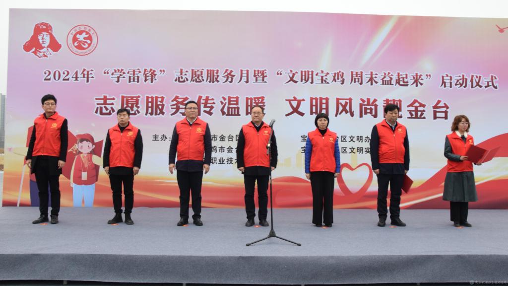 陕西机电职院志愿者参加金台区“学雷锋”志愿服务月暨“文明宝鸡 周末益起来”活动启动仪式