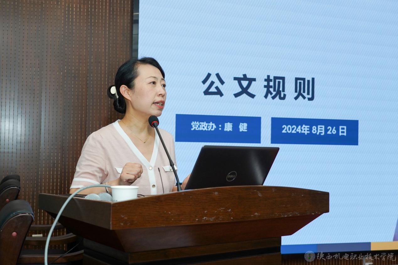 王建斌宣读《陕西机电职业技术学院2024年新入职教师岗前培训实施方案》