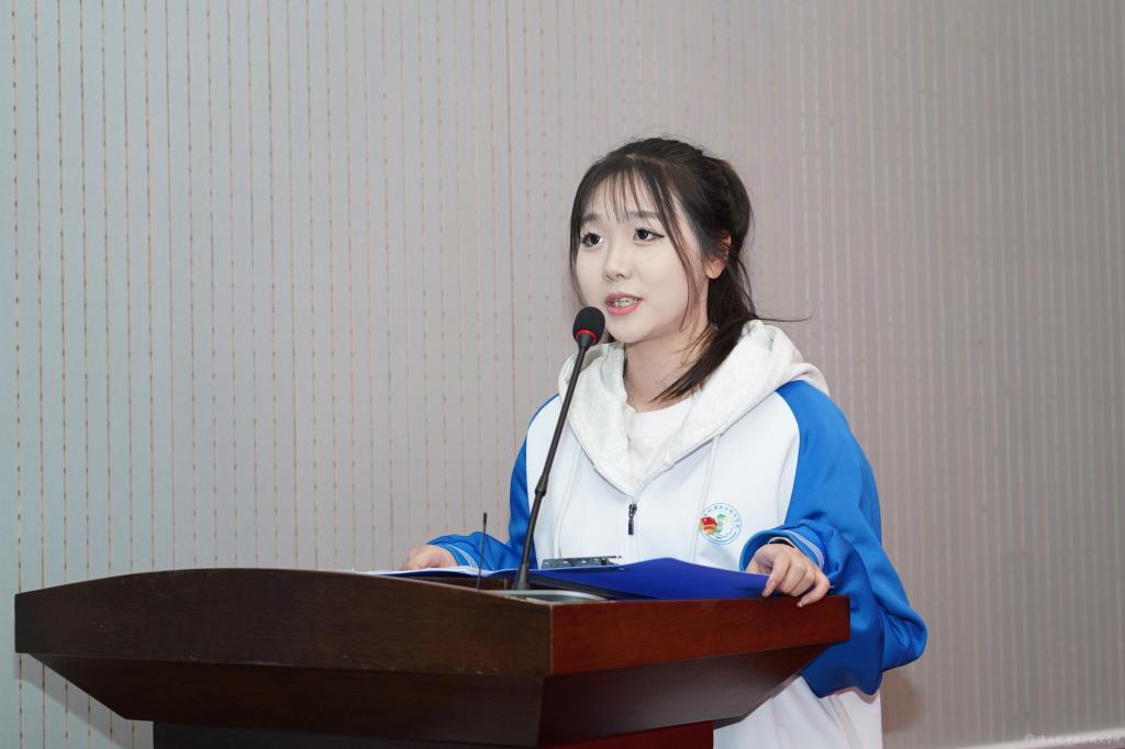 第十三期青马学员代表、铁道工程学院王君钰同学发言,她呼吁全体学员要敢于突破、勤于探索、勇挑重担;要练就扎实能力、筑牢信仰根基;要做到心中有梦、肩上有责、手中有力、眼中有光,努力成长为一名思想坚定、能力突出、作风过硬的青年马克思主义践行者。