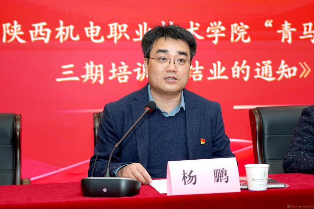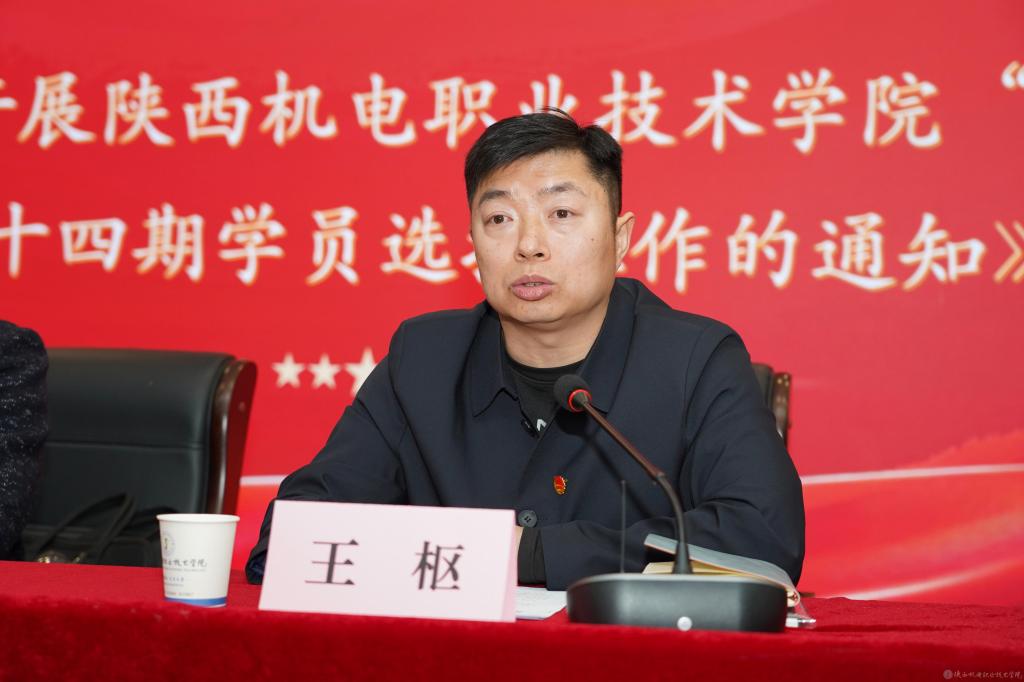 电子信息学院党支部书记杨鹏宣读《关于陕西机电职业技术学院第十三期“青年马克思主义者培养工程”培训班学员结业的通知》。团委书记王枢宣读《陕西机电职业技术学院“青年工程”第十四期学员选拔工作的通知》。