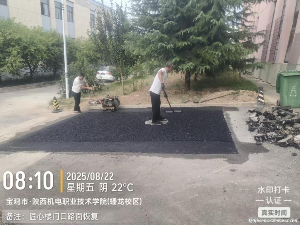 2025年暑期,烈日炎炎、热浪滚滚,面对持续高温的“烤”验,陕机电“后勤人”毅然扛起暑期保障“重担”,以“战高温、斗酷暑”的决心,投身于维修改造、环境维护、物业服务等各条“战场”,统筹推进校园设施改造提升,全力守护校园设施安全,优化校园环境舒适度,提升设施运行效率,为新学期师生顺利返校打造了优质、温馨的学习生活环境。